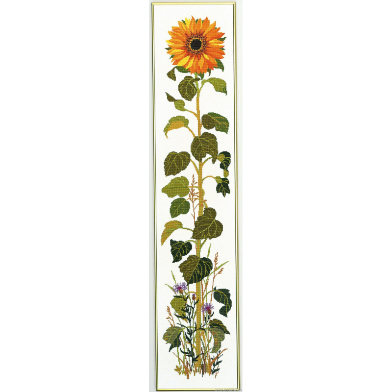 L'article 'Eva Rosenstand, kit Sunflower 25x118cm (EV08-3095)' fait partie de notre assortiment depuis le 1 mai 2009. Eva Rosenstand est une très belle gamme de points de croix comptés qui fête en 2008 ses 50 ans d'existence. Eva Rosenstand est une des premières maisons à avoir proposé aux clientes un style de broderie qui offrait d'autres motifs que des abécédaires ou marquoirs ... Les créatrices Clara Waever et Eva Rosenstand ont innové en réalisant de véritables tableaux en points de croix comptés, à s'y méprendre à de véritables peintures si on se tient à 1 petit mètre. Vous trouverez dans la gamme Eva Rosenstand beaucoup de paysages, des animaux qui semblent réels et pleins d'autres thèmes (mer - le Cervin - anciens métiers ... cartes de géographie des pays européens). Fiche technique : très belles broderies, riches en teintes différentes, souvent réalisées sur du lin. Points de croix comptés, points arrières. Ces ouvrages ne sont pas difficiles, mais relativement longs - regardez bien le format avant de commander et il est préférable d'aimer travailler sur du lin .. car c'est un peu dommage de devoir changer la trame.