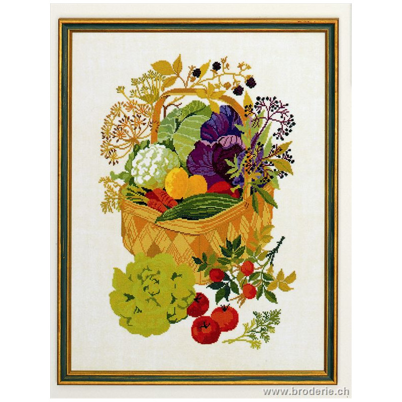 L'article 'Eva Rosenstand, kit Panier de légumes (EV08-4176)' fait partie de notre assortiment depuis le 1 mai 2009. Eva Rosenstand est une très belle gamme de points de croix comptés qui fête en 2008 ses 50 ans d'existence. Eva Rosenstand est une des premières maisons à avoir proposé aux clientes un style de broderie qui offrait d'autres motifs que des abécédaires ou marquoirs ... Les créatrices Clara Waever et Eva Rosenstand ont innové en réalisant de véritables tableaux en points de croix comptés, à s'y méprendre à de véritables peintures si on se tient à 1 petit mètre. Vous trouverez dans la gamme Eva Rosenstand beaucoup de paysages, des animaux qui semblent réels et pleins d'autres thèmes (mer - le Cervin - anciens métiers ... cartes de géographie des pays européens). Fiche technique : très belles broderies, riches en teintes différentes, souvent réalisées sur du lin. Points de croix comptés, points arrières. Ces ouvrages ne sont pas difficiles, mais relativement longs - regardez bien le format avant de commander et il est préférable d'aimer travailler sur du lin .. car c'est un peu dommage de devoir changer la trame.