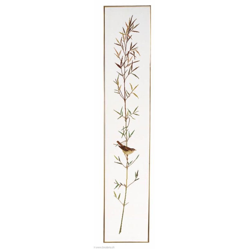 L'article 'Eva Rosenstand, kit Roseau et oiseau (EV08-4412)' fait partie de notre assortiment depuis le 1 mai 2009. Eva Rosenstand est une très belle gamme de points de croix comptés qui fête en 2008 ses 50 ans d'existence. Eva Rosenstand est une des premières maisons à avoir proposé aux clientes un style de broderie qui offrait d'autres motifs que des abécédaires ou marquoirs ... Les créatrices Clara Waever et Eva Rosenstand ont innové en réalisant de véritables tableaux en points de croix comptés, à s'y méprendre à de véritables peintures si on se tient à 1 petit mètre. Vous trouverez dans la gamme Eva Rosenstand beaucoup de paysages, des animaux qui semblent réels et pleins d'autres thèmes (mer - le Cervin - anciens métiers ... cartes de géographie des pays européens). Fiche technique : très belles broderies, riches en teintes différentes, souvent réalisées sur du lin. Points de croix comptés, points arrières. Ces ouvrages ne sont pas difficiles, mais relativement longs - regardez bien le format avant de commander et il est préférable d'aimer travailler sur du lin .. car c'est un peu dommage de devoir changer la trame.