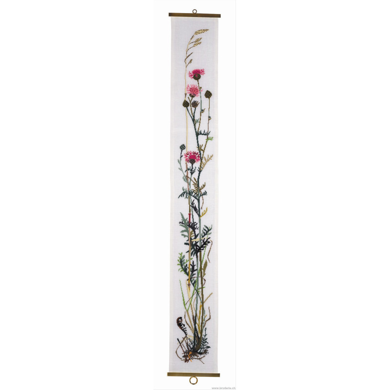 L'article 'Eva Rosenstand, kit Knapweek (EV09-2458)' fait partie de notre assortiment depuis le 1 mai 2009. Eva Rosenstand est une très belle gamme de points de croix comptés qui fête en 2008 ses 50 ans d'existence. Eva Rosenstand est une des premières maisons à avoir proposé aux clientes un style de broderie qui offrait d'autres motifs que des abécédaires ou marquoirs ... Les créatrices Clara Waever et Eva Rosenstand ont innové en réalisant de véritables tableaux en points de croix comptés, à s'y méprendre à de véritables peintures si on se tient à 1 petit mètre. Vous trouverez dans la gamme Eva Rosenstand beaucoup de paysages, des animaux qui semblent réels et pleins d'autres thèmes (mer - le Cervin - anciens métiers ... cartes de géographie des pays européens). Fiche technique : très belles broderies, riches en teintes différentes, souvent réalisées sur du lin. Points de croix comptés, points arrières. Ces ouvrages ne sont pas difficiles, mais relativement longs - regardez bien le format avant de commander et il est préférable d'aimer travailler sur du lin .. car c'est un peu dommage de devoir changer la trame.