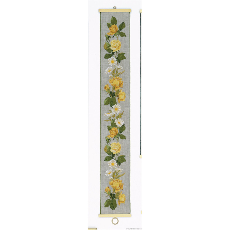 L'article 'Eva Rosenstand, kit Roses jaunes (EV09-3613)' fait partie de notre assortiment depuis le 1 mai 2009. Eva Rosenstand est une très belle gamme de points de croix comptés qui fête en 2008 ses 50 ans d'existence. Eva Rosenstand est une des premières maisons à avoir proposé aux clientes un style de broderie qui offrait d'autres motifs que des abécédaires ou marquoirs ... Les créatrices Clara Waever et Eva Rosenstand ont innové en réalisant de véritables tableaux en points de croix comptés, à s'y méprendre à de véritables peintures si on se tient à 1 petit mètre. Vous trouverez dans la gamme Eva Rosenstand beaucoup de paysages, des animaux qui semblent réels et pleins d'autres thèmes (mer - le Cervin - anciens métiers ... cartes de géographie des pays européens). Fiche technique : très belles broderies, riches en teintes différentes, souvent réalisées sur du lin. Points de croix comptés, points arrières. Ces ouvrages ne sont pas difficiles, mais relativement longs - regardez bien le format avant de commander et il est préférable d'aimer travailler sur du lin .. car c'est un peu dommage de devoir changer la trame.