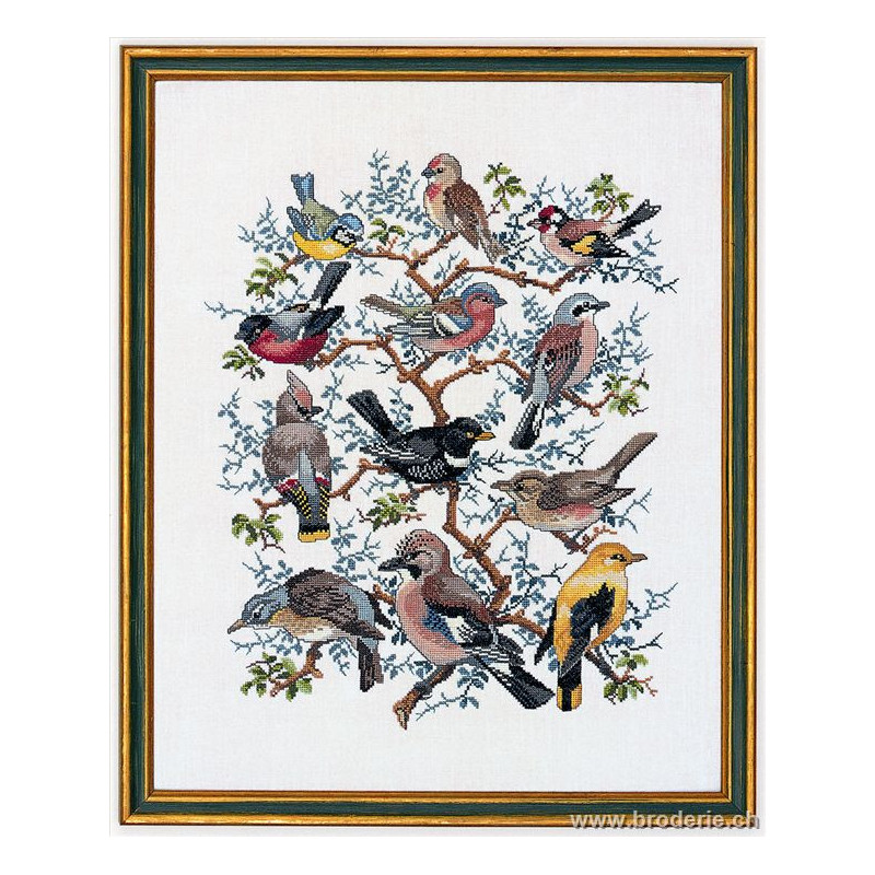 L'article 'Eva Rosenstand, kit arbre à oiseaux (EV12-266)' fait partie de notre assortiment depuis le 1 mai 2009. Eva Rosenstand est une très belle gamme de points de croix comptés qui fête en 2008 ses 50 ans d'existence. Eva Rosenstand est une des premières maisons à avoir proposé aux clientes un style de broderie qui offrait d'autres motifs que des abécédaires ou marquoirs ... Les créatrices Clara Waever et Eva Rosenstand ont innové en réalisant de véritables tableaux en points de croix comptés, à s'y méprendre à de véritables peintures si on se tient à 1 petit mètre. Vous trouverez dans la gamme Eva Rosenstand beaucoup de paysages, des animaux qui semblent réels et pleins d'autres thèmes (mer - le Cervin - anciens métiers ... cartes de géographie des pays européens). Fiche technique : très belles broderies, riches en teintes différentes, souvent réalisées sur du lin. Points de croix comptés, points arrières. Ces ouvrages ne sont pas difficiles, mais relativement longs - regardez bien le format avant de commander et il est préférable d'aimer travailler sur du lin .. car c'est un peu dommage de devoir changer la trame.