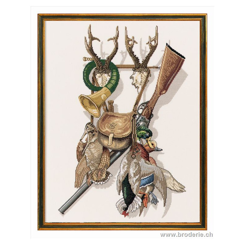 L'article 'Eva Rosenstand, kit La Chasse (EV12-279)' fait partie de notre assortiment depuis le 1 mai 2009. Eva Rosenstand est une très belle gamme de points de croix comptés qui fête en 2008 ses 50 ans d'existence. Eva Rosenstand est une des premières maisons à avoir proposé aux clientes un style de broderie qui offrait d'autres motifs que des abécédaires ou marquoirs ... Les créatrices Clara Waever et Eva Rosenstand ont innové en réalisant de véritables tableaux en points de croix comptés, à s'y méprendre à de véritables peintures si on se tient à 1 petit mètre. Vous trouverez dans la gamme Eva Rosenstand beaucoup de paysages, des animaux qui semblent réels et pleins d'autres thèmes (mer - le Cervin - anciens métiers ... cartes de géographie des pays européens). Fiche technique : très belles broderies, riches en teintes différentes, souvent réalisées sur du lin. Points de croix comptés, points arrières. Ces ouvrages ne sont pas difficiles, mais relativement longs - regardez bien le format avant de commander et il est préférable d'aimer travailler sur du lin .. car c'est un peu dommage de devoir changer la trame.