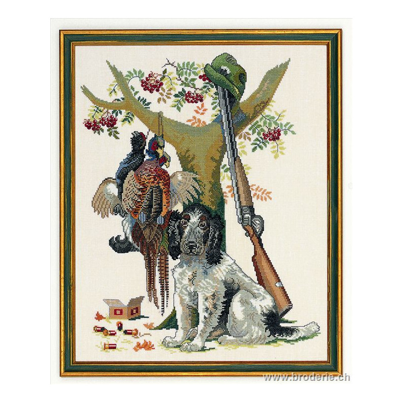 L'article 'Eva Rosenstand, kit Chasse (EV12-334)' fait partie de notre assortiment depuis le 1 mai 2009. Eva Rosenstand est une très belle gamme de points de croix comptés qui fête en 2008 ses 50 ans d'existence. Eva Rosenstand est une des premières maisons à avoir proposé aux clientes un style de broderie qui offrait d'autres motifs que des abécédaires ou marquoirs ... Les créatrices Clara Waever et Eva Rosenstand ont innové en réalisant de véritables tableaux en points de croix comptés, à s'y méprendre à de véritables peintures si on se tient à 1 petit mètre. Vous trouverez dans la gamme Eva Rosenstand beaucoup de paysages, des animaux qui semblent réels et pleins d'autres thèmes (mer - le Cervin - anciens métiers ... cartes de géographie des pays européens). Fiche technique : très belles broderies, riches en teintes différentes, souvent réalisées sur du lin. Points de croix comptés, points arrières. Ces ouvrages ne sont pas difficiles, mais relativement longs - regardez bien le format avant de commander et il est préférable d'aimer travailler sur du lin .. car c'est un peu dommage de devoir changer la trame.