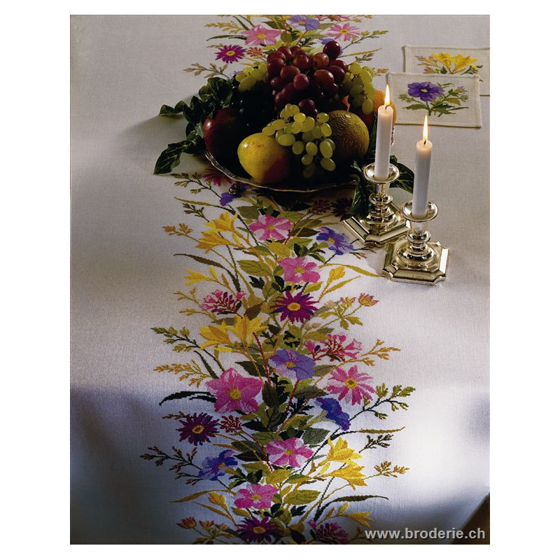 L'article 'Eva Rosenstand, kit Nappe Pétunias (EV12-4000)' fait partie de notre assortiment depuis le 1 mai 2009. Eva Rosenstand est une très belle gamme de points de croix comptés qui fête en 2008 ses 50 ans d'existence. Eva Rosenstand est une des premières maisons à avoir proposé aux clientes un style de broderie qui offrait d'autres motifs que des abécédaires ou marquoirs ... Les créatrices Clara Waever et Eva Rosenstand ont innové en réalisant de véritables tableaux en points de croix comptés, à s'y méprendre à de véritables peintures si on se tient à 1 petit mètre. Vous trouverez dans la gamme Eva Rosenstand beaucoup de paysages, des animaux qui semblent réels et pleins d'autres thèmes (mer - le Cervin - anciens métiers ... cartes de géographie des pays européens). Fiche technique : très belles broderies, riches en teintes différentes, souvent réalisées sur du lin. Points de croix comptés, points arrières. Ces ouvrages ne sont pas difficiles, mais relativement longs - regardez bien le format avant de commander et il est préférable d'aimer travailler sur du lin .. car c'est un peu dommage de devoir changer la trame.