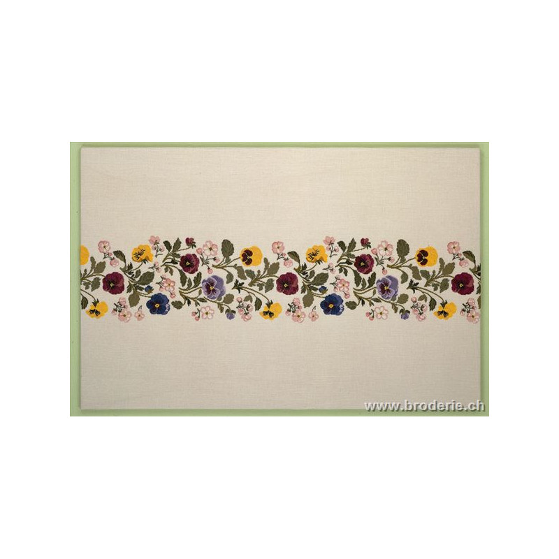 L'article 'Eva Rosenstand, kit Nappe Pensées et fleurs et pommiers (EV12-4293)' fait partie de notre assortiment depuis le 1 mai 2009. Eva Rosenstand est une très belle gamme de points de croix comptés qui fête en 2008 ses 50 ans d'existence. Eva Rosenstand est une des premières maisons à avoir proposé aux clientes un style de broderie qui offrait d'autres motifs que des abécédaires ou marquoirs ... Les créatrices Clara Waever et Eva Rosenstand ont innové en réalisant de véritables tableaux en points de croix comptés, à s'y méprendre à de véritables peintures si on se tient à 1 petit mètre. Vous trouverez dans la gamme Eva Rosenstand beaucoup de paysages, des animaux qui semblent réels et pleins d'autres thèmes (mer - le Cervin - anciens métiers ... cartes de géographie des pays européens). Fiche technique : très belles broderies, riches en teintes différentes, souvent réalisées sur du lin. Points de croix comptés, points arrières. Ces ouvrages ne sont pas difficiles, mais relativement longs - regardez bien le format avant de commander et il est préférable d'aimer travailler sur du lin .. car c'est un peu dommage de devoir changer la trame.