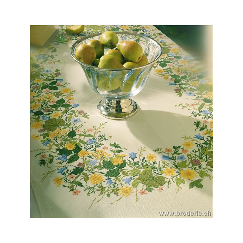 L'article 'Eva Rosenstand, kit Nappe fleurs d'été (EV12-4584)' fait partie de notre assortiment depuis le 1 mai 2009. Eva Rosenstand est une très belle gamme de points de croix comptés qui fête en 2008 ses 50 ans d'existence. Eva Rosenstand est une des premières maisons à avoir proposé aux clientes un style de broderie qui offrait d'autres motifs que des abécédaires ou marquoirs ... Les créatrices Clara Waever et Eva Rosenstand ont innové en réalisant de véritables tableaux en points de croix comptés, à s'y méprendre à de véritables peintures si on se tient à 1 petit mètre. Vous trouverez dans la gamme Eva Rosenstand beaucoup de paysages, des animaux qui semblent réels et pleins d'autres thèmes (mer - le Cervin - anciens métiers ... cartes de géographie des pays européens). Fiche technique : très belles broderies, riches en teintes différentes, souvent réalisées sur du lin. Points de croix comptés, points arrières. Ces ouvrages ne sont pas difficiles, mais relativement longs - regardez bien le format avant de commander et il est préférable d'aimer travailler sur du lin .. car c'est un peu dommage de devoir changer la trame.