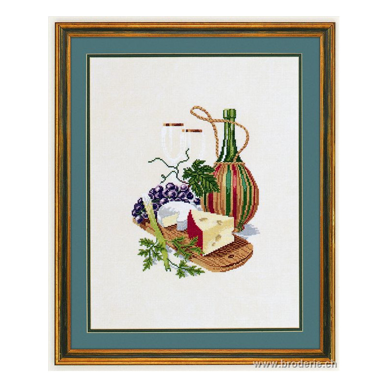 L'article 'Eva Rosenstand, kit Vin rouge et fromage (EV12-603)' fait partie de notre assortiment depuis le 1 mai 2009. Eva Rosenstand est une très belle gamme de points de croix comptés qui fête en 2008 ses 50 ans d'existence. Eva Rosenstand est une des premières maisons à avoir proposé aux clientes un style de broderie qui offrait d'autres motifs que des abécédaires ou marquoirs ... Les créatrices Clara Waever et Eva Rosenstand ont innové en réalisant de véritables tableaux en points de croix comptés, à s'y méprendre à de véritables peintures si on se tient à 1 petit mètre. Vous trouverez dans la gamme Eva Rosenstand beaucoup de paysages, des animaux qui semblent réels et pleins d'autres thèmes (mer - le Cervin - anciens métiers ... cartes de géographie des pays européens). Fiche technique : très belles broderies, riches en teintes différentes, souvent réalisées sur du lin. Points de croix comptés, points arrières. Ces ouvrages ne sont pas difficiles, mais relativement longs - regardez bien le format avant de commander et il est préférable d'aimer travailler sur du lin .. car c'est un peu dommage de devoir changer la trame.