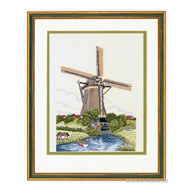 L'article 'Eva Rosenstand, kit Moulin Hollandais (EV12-623)' fait partie de notre assortiment depuis le 1 mai 2009. Eva Rosenstand est une très belle gamme de points de croix comptés qui fête en 2008 ses 50 ans d'existence. Eva Rosenstand est une des premières maisons à avoir proposé aux clientes un style de broderie qui offrait d'autres motifs que des abécédaires ou marquoirs ... Les créatrices Clara Waever et Eva Rosenstand ont innové en réalisant de véritables tableaux en points de croix comptés, à s'y méprendre à de véritables peintures si on se tient à 1 petit mètre. Vous trouverez dans la gamme Eva Rosenstand beaucoup de paysages, des animaux qui semblent réels et pleins d'autres thèmes (mer - le Cervin - anciens métiers ... cartes de géographie des pays européens). Fiche technique : très belles broderies, riches en teintes différentes, souvent réalisées sur du lin. Points de croix comptés, points arrières. Ces ouvrages ne sont pas difficiles, mais relativement longs - regardez bien le format avant de commander et il est préférable d'aimer travailler sur du lin .. car c'est un peu dommage de devoir changer la trame.