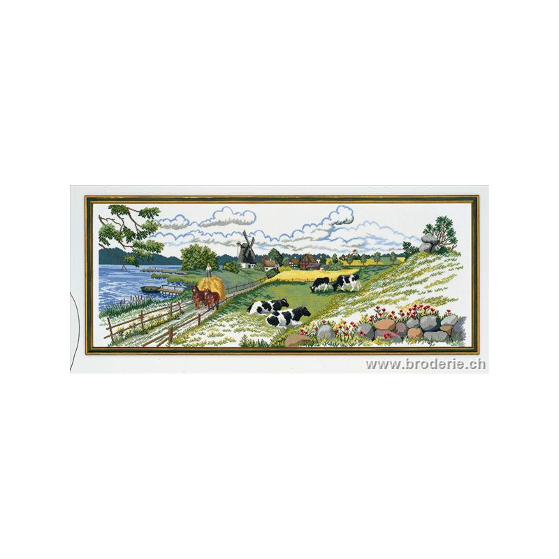 L'article 'Eva Rosenstand, kit Campagne danoise (EV12-724)' fait partie de notre assortiment depuis le 1 mai 2009. Eva Rosenstand est une très belle gamme de points de croix comptés qui fête en 2008 ses 50 ans d'existence. Eva Rosenstand est une des premières maisons à avoir proposé aux clientes un style de broderie qui offrait d'autres motifs que des abécédaires ou marquoirs ... Les créatrices Clara Waever et Eva Rosenstand ont innové en réalisant de véritables tableaux en points de croix comptés, à s'y méprendre à de véritables peintures si on se tient à 1 petit mètre. Vous trouverez dans la gamme Eva Rosenstand beaucoup de paysages, des animaux qui semblent réels et pleins d'autres thèmes (mer - le Cervin - anciens métiers ... cartes de géographie des pays européens). Fiche technique : très belles broderies, riches en teintes différentes, souvent réalisées sur du lin. Points de croix comptés, points arrières. Ces ouvrages ne sont pas difficiles, mais relativement longs - regardez bien le format avant de commander et il est préférable d'aimer travailler sur du lin .. car c'est un peu dommage de devoir changer la trame.