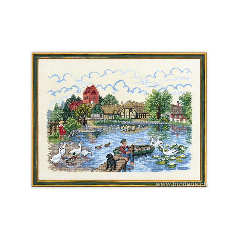 L'article 'Eva Rosenstand, kit Pêche au lac (EV12-729)' fait partie de notre assortiment depuis le 1 mai 2009. Eva Rosenstand est une très belle gamme de points de croix comptés qui fête en 2008 ses 50 ans d'existence. Eva Rosenstand est une des premières maisons à avoir proposé aux clientes un style de broderie qui offrait d'autres motifs que des abécédaires ou marquoirs ... Les créatrices Clara Waever et Eva Rosenstand ont innové en réalisant de véritables tableaux en points de croix comptés, à s'y méprendre à de véritables peintures si on se tient à 1 petit mètre. Vous trouverez dans la gamme Eva Rosenstand beaucoup de paysages, des animaux qui semblent réels et pleins d'autres thèmes (mer - le Cervin - anciens métiers ... cartes de géographie des pays européens). Fiche technique : très belles broderies, riches en teintes différentes, souvent réalisées sur du lin. Points de croix comptés, points arrières. Ces ouvrages ne sont pas difficiles, mais relativement longs - regardez bien le format avant de commander et il est préférable d'aimer travailler sur du lin .. car c'est un peu dommage de devoir changer la trame.