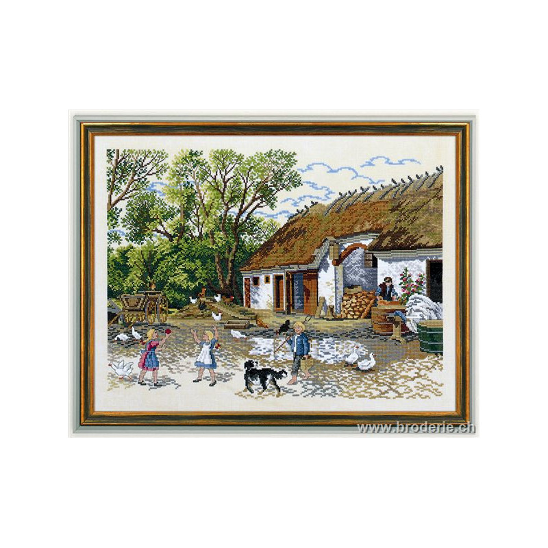 L'article 'Eva Rosenstand, kit Ferme et enfants (EV12-802)' fait partie de notre assortiment depuis le 9 août 2018. Eva Rosenstand est une très belle gamme de points de croix comptés qui fête en 2008 ses 50 ans d'existence. Eva Rosenstand est une des premières maisons à avoir proposé aux clientes un style de broderie qui offrait d'autres motifs que des abécédaires ou marquoirs ... Les créatrices Clara Waever et Eva Rosenstand ont innové en réalisant de véritables tableaux en points de croix comptés, à s'y méprendre à de véritables peintures si on se tient à 1 petit mètre. Vous trouverez dans la gamme Eva Rosenstand beaucoup de paysages, des animaux qui semblent réels et pleins d'autres thèmes (mer - le Cervin - anciens métiers ... cartes de géographie des pays européens). Fiche technique : très belles broderies, riches en teintes différentes, souvent réalisées sur du lin. Points de croix comptés, points arrières. Ces ouvrages ne sont pas difficiles, mais relativement longs - regardez bien le format avant de commander et il est préférable d'aimer travailler sur du lin .. car c'est un peu dommage de devoir changer la trame.
