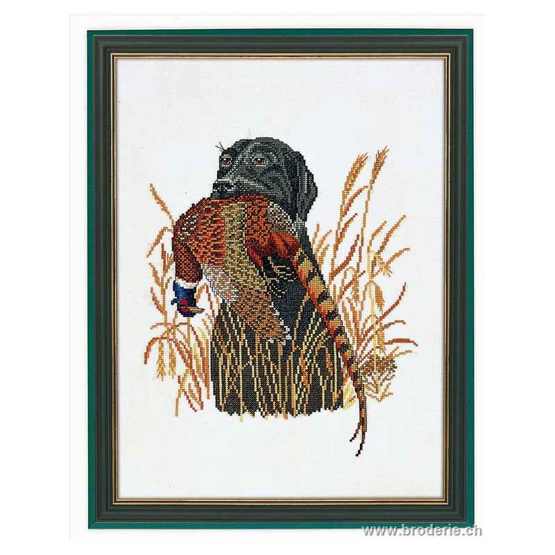L'article 'Eva Rosenstand, kit Chien de chasse (EV12-883)' fait partie de notre assortiment depuis le 1 mai 2009. Eva Rosenstand est une très belle gamme de points de croix comptés qui fête en 2008 ses 50 ans d'existence. Eva Rosenstand est une des premières maisons à avoir proposé aux clientes un style de broderie qui offrait d'autres motifs que des abécédaires ou marquoirs ... Les créatrices Clara Waever et Eva Rosenstand ont innové en réalisant de véritables tableaux en points de croix comptés, à s'y méprendre à de véritables peintures si on se tient à 1 petit mètre. Vous trouverez dans la gamme Eva Rosenstand beaucoup de paysages, des animaux qui semblent réels et pleins d'autres thèmes (mer - le Cervin - anciens métiers ... cartes de géographie des pays européens). Fiche technique : très belles broderies, riches en teintes différentes, souvent réalisées sur du lin. Points de croix comptés, points arrières. Ces ouvrages ne sont pas difficiles, mais relativement longs - regardez bien le format avant de commander et il est préférable d'aimer travailler sur du lin .. car c'est un peu dommage de devoir changer la trame.