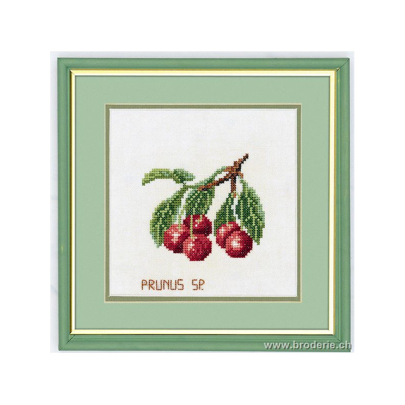 L'article 'Eva Rosenstand, kit Cerises (EV12-960)' fait partie de notre assortiment depuis le 1 mai 2009. Eva Rosenstand est une très belle gamme de points de croix comptés qui fête en 2008 ses 50 ans d'existence. Eva Rosenstand est une des premières maisons à avoir proposé aux clientes un style de broderie qui offrait d'autres motifs que des abécédaires ou marquoirs ... Les créatrices Clara Waever et Eva Rosenstand ont innové en réalisant de véritables tableaux en points de croix comptés, à s'y méprendre à de véritables peintures si on se tient à 1 petit mètre. Vous trouverez dans la gamme Eva Rosenstand beaucoup de paysages, des animaux qui semblent réels et pleins d'autres thèmes (mer - le Cervin - anciens métiers ... cartes de géographie des pays européens). Fiche technique : très belles broderies, riches en teintes différentes, souvent réalisées sur du lin. Points de croix comptés, points arrières. Ces ouvrages ne sont pas difficiles, mais relativement longs - regardez bien le format avant de commander et il est préférable d'aimer travailler sur du lin .. car c'est un peu dommage de devoir changer la trame.