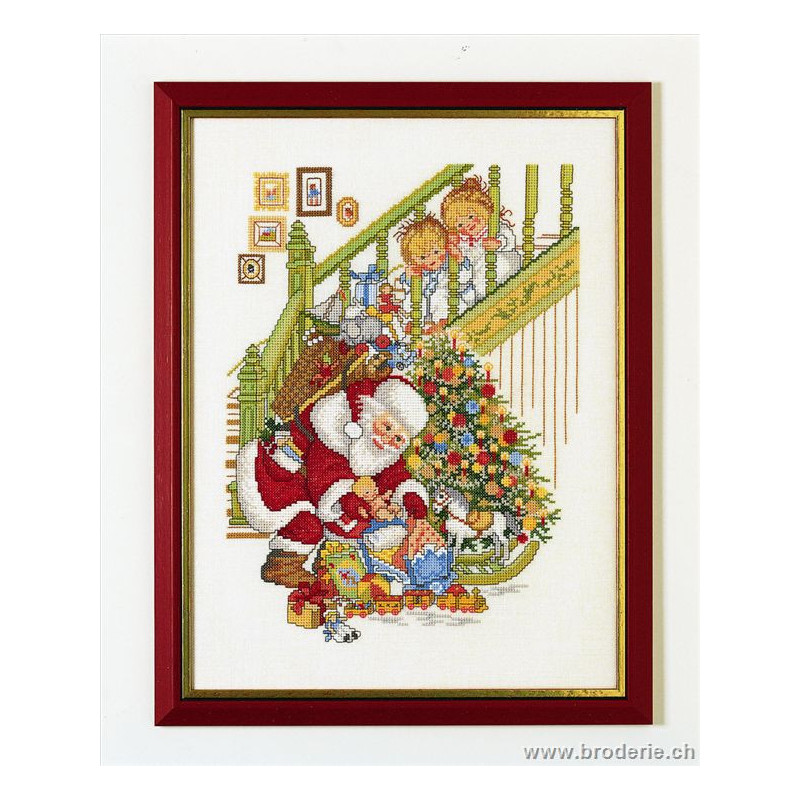 L'article 'Eva Rosenstand, kit Père Noël et cadeaux (EV12-985)' fait partie de notre assortiment depuis le 1 mai 2009. Eva Rosenstand est une très belle gamme de points de croix comptés qui fête en 2008 ses 50 ans d'existence. Eva Rosenstand est une des premières maisons à avoir proposé aux clientes un style de broderie qui offrait d'autres motifs que des abécédaires ou marquoirs ... Les créatrices Clara Waever et Eva Rosenstand ont innové en réalisant de véritables tableaux en points de croix comptés, à s'y méprendre à de véritables peintures si on se tient à 1 petit mètre. Vous trouverez dans la gamme Eva Rosenstand beaucoup de paysages, des animaux qui semblent réels et pleins d'autres thèmes (mer - le Cervin - anciens métiers ... cartes de géographie des pays européens). Fiche technique : très belles broderies, riches en teintes différentes, souvent réalisées sur du lin. Points de croix comptés, points arrières. Ces ouvrages ne sont pas difficiles, mais relativement longs - regardez bien le format avant de commander et il est préférable d'aimer travailler sur du lin .. car c'est un peu dommage de devoir changer la trame.