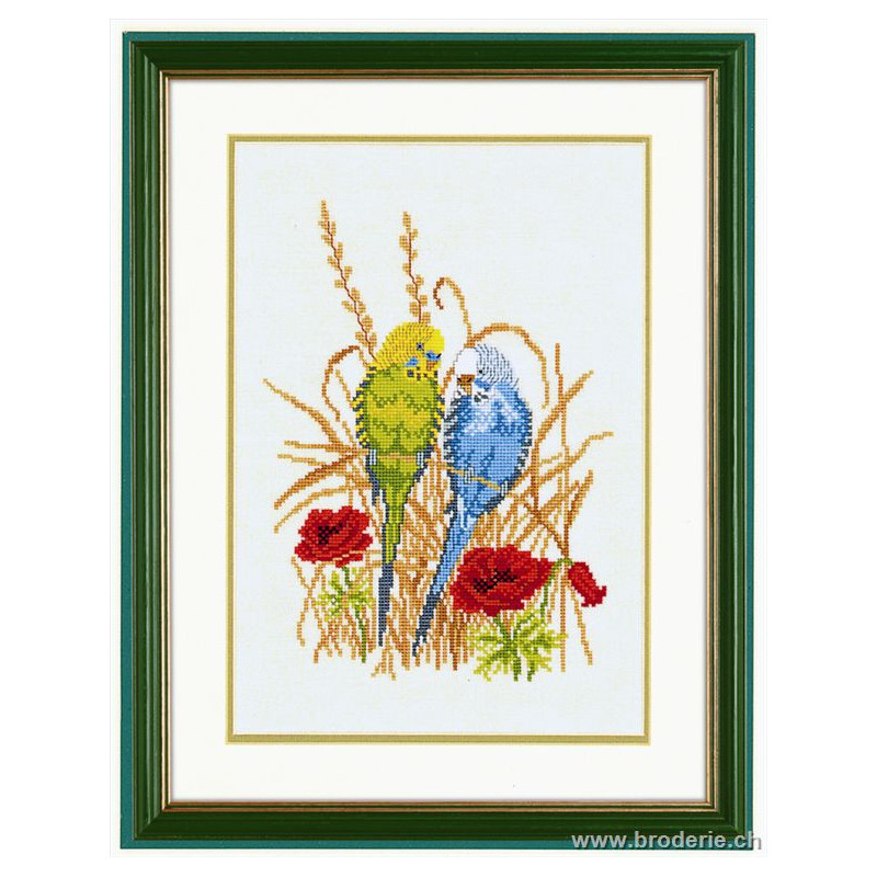 L'article 'Eva Rosenstand, kit Perruches (EV12-994)' fait partie de notre assortiment depuis le 1 mai 2009. Eva Rosenstand est une très belle gamme de points de croix comptés qui fête en 2008 ses 50 ans d'existence. Eva Rosenstand est une des premières maisons à avoir proposé aux clientes un style de broderie qui offrait d'autres motifs que des abécédaires ou marquoirs ... Les créatrices Clara Waever et Eva Rosenstand ont innové en réalisant de véritables tableaux en points de croix comptés, à s'y méprendre à de véritables peintures si on se tient à 1 petit mètre. Vous trouverez dans la gamme Eva Rosenstand beaucoup de paysages, des animaux qui semblent réels et pleins d'autres thèmes (mer - le Cervin - anciens métiers ... cartes de géographie des pays européens). Fiche technique : très belles broderies, riches en teintes différentes, souvent réalisées sur du lin. Points de croix comptés, points arrières. Ces ouvrages ne sont pas difficiles, mais relativement longs - regardez bien le format avant de commander et il est préférable d'aimer travailler sur du lin .. car c'est un peu dommage de devoir changer la trame.
