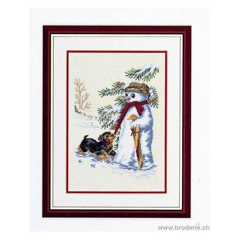 L'article 'Eva Rosenstand, kit Bonhomme de neige et chien (EV12-997)' fait partie de notre assortiment depuis le 1 mai 2009. Eva Rosenstand est une très belle gamme de points de croix comptés qui fête en 2008 ses 50 ans d'existence. Eva Rosenstand est une des premières maisons à avoir proposé aux clientes un style de broderie qui offrait d'autres motifs que des abécédaires ou marquoirs ... Les créatrices Clara Waever et Eva Rosenstand ont innové en réalisant de véritables tableaux en points de croix comptés, à s'y méprendre à de véritables peintures si on se tient à 1 petit mètre. Vous trouverez dans la gamme Eva Rosenstand beaucoup de paysages, des animaux qui semblent réels et pleins d'autres thèmes (mer - le Cervin - anciens métiers ... cartes de géographie des pays européens). Fiche technique : très belles broderies, riches en teintes différentes, souvent réalisées sur du lin. Points de croix comptés, points arrières. Ces ouvrages ne sont pas difficiles, mais relativement longs - regardez bien le format avant de commander et il est préférable d'aimer travailler sur du lin .. car c'est un peu dommage de devoir changer la trame.