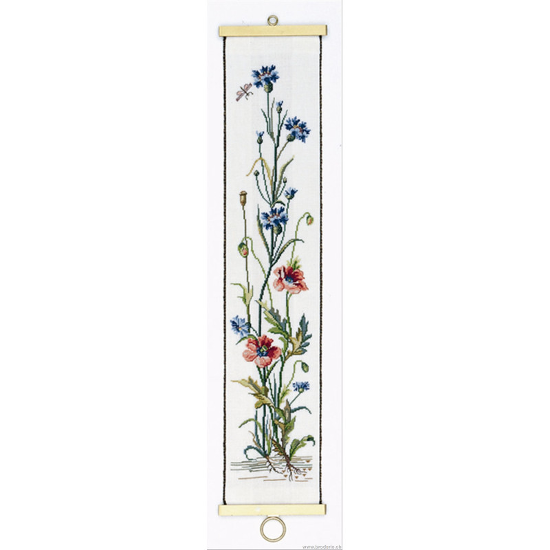 L'article 'Eva Rosenstand, kit bleuets et coquelicots (EV13-032)' fait partie de notre assortiment depuis le 1 mai 2009. Eva Rosenstand est une très belle gamme de points de croix comptés qui fête en 2008 ses 50 ans d'existence. Eva Rosenstand est une des premières maisons à avoir proposé aux clientes un style de broderie qui offrait d'autres motifs que des abécédaires ou marquoirs ... Les créatrices Clara Waever et Eva Rosenstand ont innové en réalisant de véritables tableaux en points de croix comptés, à s'y méprendre à de véritables peintures si on se tient à 1 petit mètre. Vous trouverez dans la gamme Eva Rosenstand beaucoup de paysages, des animaux qui semblent réels et pleins d'autres thèmes (mer - le Cervin - anciens métiers ... cartes de géographie des pays européens). Fiche technique : très belles broderies, riches en teintes différentes, souvent réalisées sur du lin. Points de croix comptés, points arrières. Ces ouvrages ne sont pas difficiles, mais relativement longs - regardez bien le format avant de commander et il est préférable d'aimer travailler sur du lin .. car c'est un peu dommage de devoir changer la trame.