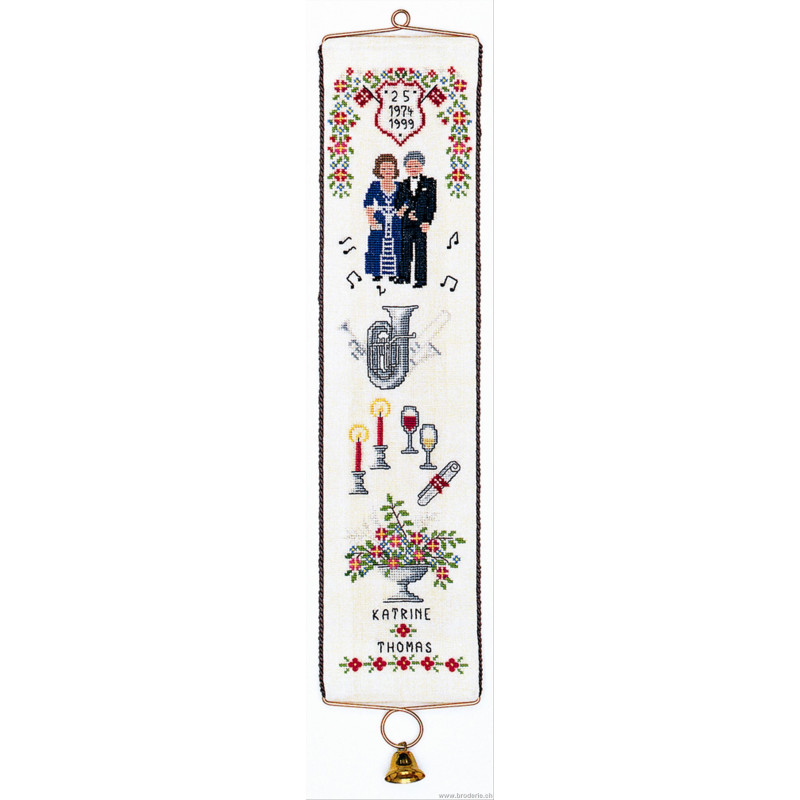 L'article 'Eva Rosenstand, kit Anniversaire de mariage (EV13-350)' fait partie de notre assortiment depuis le 1 mai 2009. Eva Rosenstand est une très belle gamme de points de croix comptés qui fête en 2008 ses 50 ans d'existence. Eva Rosenstand est une des premières maisons à avoir proposé aux clientes un style de broderie qui offrait d'autres motifs que des abécédaires ou marquoirs ... Les créatrices Clara Waever et Eva Rosenstand ont innové en réalisant de véritables tableaux en points de croix comptés, à s'y méprendre à de véritables peintures si on se tient à 1 petit mètre. Vous trouverez dans la gamme Eva Rosenstand beaucoup de paysages, des animaux qui semblent réels et pleins d'autres thèmes (mer - le Cervin - anciens métiers ... cartes de géographie des pays européens). Fiche technique : très belles broderies, riches en teintes différentes, souvent réalisées sur du lin. Points de croix comptés, points arrières. Ces ouvrages ne sont pas difficiles, mais relativement longs - regardez bien le format avant de commander et il est préférable d'aimer travailler sur du lin .. car c'est un peu dommage de devoir changer la trame.