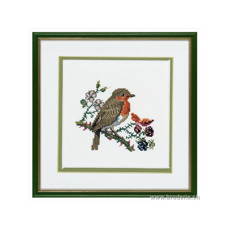 L'article 'Eva Rosenstand, kit Rouge-Gorge (EV14-040)' fait partie de notre assortiment depuis le 1 mai 2009. Eva Rosenstand est une très belle gamme de points de croix comptés qui fête en 2008 ses 50 ans d'existence. Eva Rosenstand est une des premières maisons à avoir proposé aux clientes un style de broderie qui offrait d'autres motifs que des abécédaires ou marquoirs ... Les créatrices Clara Waever et Eva Rosenstand ont innové en réalisant de véritables tableaux en points de croix comptés, à s'y méprendre à de véritables peintures si on se tient à 1 petit mètre. Vous trouverez dans la gamme Eva Rosenstand beaucoup de paysages, des animaux qui semblent réels et pleins d'autres thèmes (mer - le Cervin - anciens métiers ... cartes de géographie des pays européens). Fiche technique : très belles broderies, riches en teintes différentes, souvent réalisées sur du lin. Points de croix comptés, points arrières. Ces ouvrages ne sont pas difficiles, mais relativement longs - regardez bien le format avant de commander et il est préférable d'aimer travailler sur du lin .. car c'est un peu dommage de devoir changer la trame.