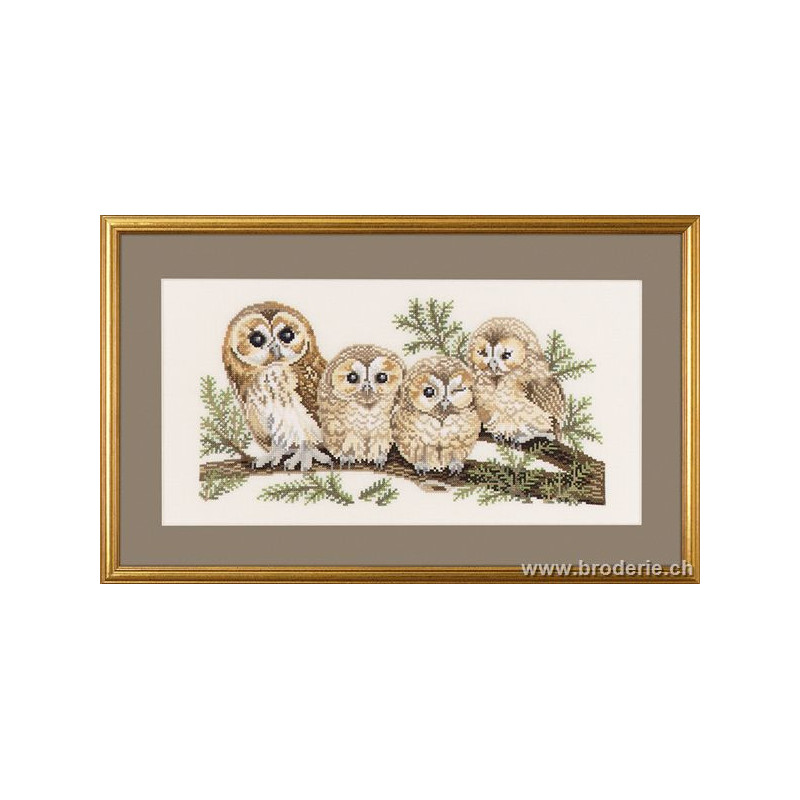L'article 'Eva Rosenstand, kit Chouettes (EV14-146)' fait partie de notre assortiment depuis le 1 mai 2009. Eva Rosenstand est une très belle gamme de points de croix comptés qui fête en 2008 ses 50 ans d'existence. Eva Rosenstand est une des premières maisons à avoir proposé aux clientes un style de broderie qui offrait d'autres motifs que des abécédaires ou marquoirs ... Les créatrices Clara Waever et Eva Rosenstand ont innové en réalisant de véritables tableaux en points de croix comptés, à s'y méprendre à de véritables peintures si on se tient à 1 petit mètre. Vous trouverez dans la gamme Eva Rosenstand beaucoup de paysages, des animaux qui semblent réels et pleins d'autres thèmes (mer - le Cervin - anciens métiers ... cartes de géographie des pays européens). Fiche technique : très belles broderies, riches en teintes différentes, souvent réalisées sur du lin. Points de croix comptés, points arrières. Ces ouvrages ne sont pas difficiles, mais relativement longs - regardez bien le format avant de commander et il est préférable d'aimer travailler sur du lin .. car c'est un peu dommage de devoir changer la trame.