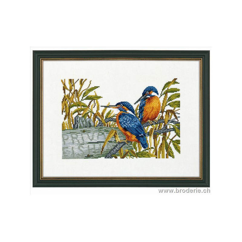 L'article 'Eva Rosenstand, kit Martin pêcheurs (EV14-147)' fait partie de notre assortiment depuis le 1 mai 2009. Eva Rosenstand est une très belle gamme de points de croix comptés qui fête en 2008 ses 50 ans d'existence. Eva Rosenstand est une des premières maisons à avoir proposé aux clientes un style de broderie qui offrait d'autres motifs que des abécédaires ou marquoirs ... Les créatrices Clara Waever et Eva Rosenstand ont innové en réalisant de véritables tableaux en points de croix comptés, à s'y méprendre à de véritables peintures si on se tient à 1 petit mètre. Vous trouverez dans la gamme Eva Rosenstand beaucoup de paysages, des animaux qui semblent réels et pleins d'autres thèmes (mer - le Cervin - anciens métiers ... cartes de géographie des pays européens). Fiche technique : très belles broderies, riches en teintes différentes, souvent réalisées sur du lin. Points de croix comptés, points arrières. Ces ouvrages ne sont pas difficiles, mais relativement longs - regardez bien le format avant de commander et il est préférable d'aimer travailler sur du lin .. car c'est un peu dommage de devoir changer la trame.