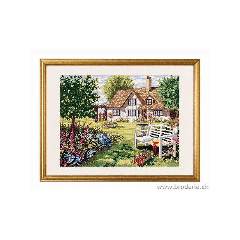 L'article 'Eva Rosenstand, kit Cottage anglais (EV14-154)' fait partie de notre assortiment depuis le 1 mai 2009. Eva Rosenstand est une très belle gamme de points de croix comptés qui fête en 2008 ses 50 ans d'existence. Eva Rosenstand est une des premières maisons à avoir proposé aux clientes un style de broderie qui offrait d'autres motifs que des abécédaires ou marquoirs ... Les créatrices Clara Waever et Eva Rosenstand ont innové en réalisant de véritables tableaux en points de croix comptés, à s'y méprendre à de véritables peintures si on se tient à 1 petit mètre. Vous trouverez dans la gamme Eva Rosenstand beaucoup de paysages, des animaux qui semblent réels et pleins d'autres thèmes (mer - le Cervin - anciens métiers ... cartes de géographie des pays européens). Fiche technique : très belles broderies, riches en teintes différentes, souvent réalisées sur du lin. Points de croix comptés, points arrières. Ces ouvrages ne sont pas difficiles, mais relativement longs - regardez bien le format avant de commander et il est préférable d'aimer travailler sur du lin .. car c'est un peu dommage de devoir changer la trame.