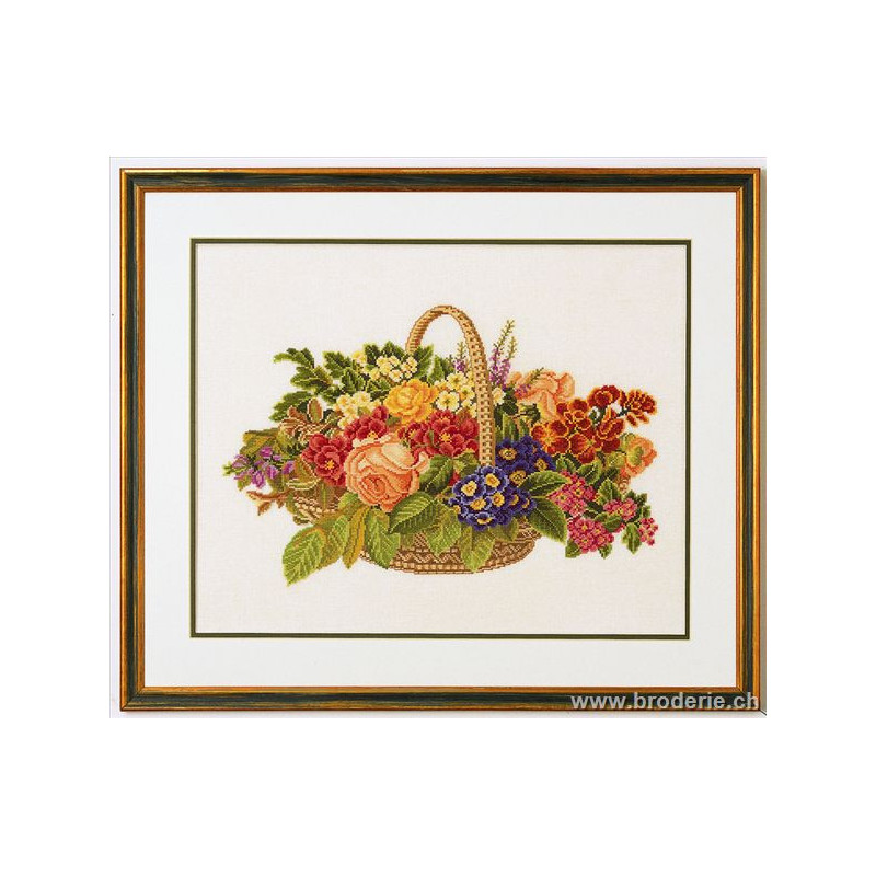 L'article 'Eva Rosenstand, kit Panierr de fleurs (EV14-186)' fait partie de notre assortiment depuis le 1 mai 2009. Eva Rosenstand est une très belle gamme de points de croix comptés qui fête en 2008 ses 50 ans d'existence. Eva Rosenstand est une des premières maisons à avoir proposé aux clientes un style de broderie qui offrait d'autres motifs que des abécédaires ou marquoirs ... Les créatrices Clara Waever et Eva Rosenstand ont innové en réalisant de véritables tableaux en points de croix comptés, à s'y méprendre à de véritables peintures si on se tient à 1 petit mètre. Vous trouverez dans la gamme Eva Rosenstand beaucoup de paysages, des animaux qui semblent réels et pleins d'autres thèmes (mer - le Cervin - anciens métiers ... cartes de géographie des pays européens). Fiche technique : très belles broderies, riches en teintes différentes, souvent réalisées sur du lin. Points de croix comptés, points arrières. Ces ouvrages ne sont pas difficiles, mais relativement longs - regardez bien le format avant de commander et il est préférable d'aimer travailler sur du lin .. car c'est un peu dommage de devoir changer la trame.