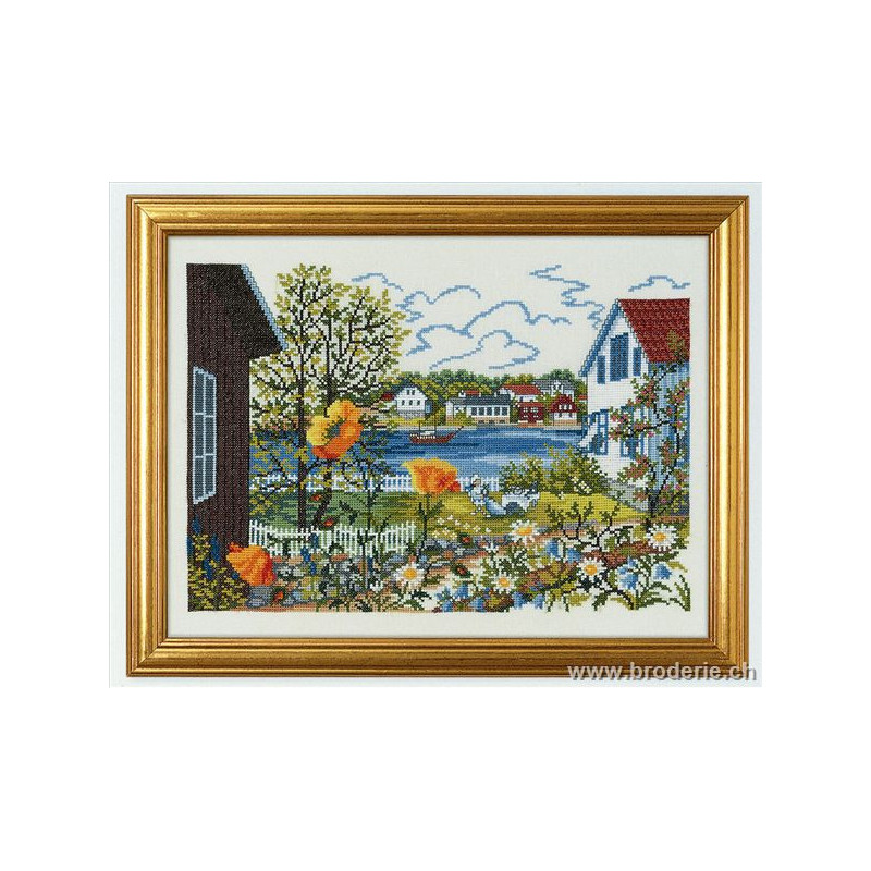 L'article 'Eva Rosenstand, kit Village et jardins (EV14-204)' fait partie de notre assortiment depuis le 1 mai 2009. Eva Rosenstand est une très belle gamme de points de croix comptés qui fête en 2008 ses 50 ans d'existence. Eva Rosenstand est une des premières maisons à avoir proposé aux clientes un style de broderie qui offrait d'autres motifs que des abécédaires ou marquoirs ... Les créatrices Clara Waever et Eva Rosenstand ont innové en réalisant de véritables tableaux en points de croix comptés, à s'y méprendre à de véritables peintures si on se tient à 1 petit mètre. Vous trouverez dans la gamme Eva Rosenstand beaucoup de paysages, des animaux qui semblent réels et pleins d'autres thèmes (mer - le Cervin - anciens métiers ... cartes de géographie des pays européens). Fiche technique : très belles broderies, riches en teintes différentes, souvent réalisées sur du lin. Points de croix comptés, points arrières. Ces ouvrages ne sont pas difficiles, mais relativement longs - regardez bien le format avant de commander et il est préférable d'aimer travailler sur du lin .. car c'est un peu dommage de devoir changer la trame.