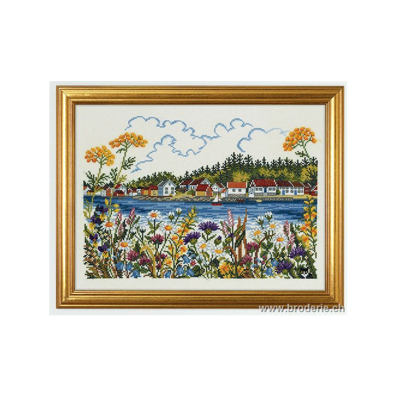 L'article 'Eva Rosenstand, kit Village et lac (EV14-210)' fait partie de notre assortiment depuis le 1 mai 2009. Eva Rosenstand est une très belle gamme de points de croix comptés qui fête en 2008 ses 50 ans d'existence. Eva Rosenstand est une des premières maisons à avoir proposé aux clientes un style de broderie qui offrait d'autres motifs que des abécédaires ou marquoirs ... Les créatrices Clara Waever et Eva Rosenstand ont innové en réalisant de véritables tableaux en points de croix comptés, à s'y méprendre à de véritables peintures si on se tient à 1 petit mètre. Vous trouverez dans la gamme Eva Rosenstand beaucoup de paysages, des animaux qui semblent réels et pleins d'autres thèmes (mer - le Cervin - anciens métiers ... cartes de géographie des pays européens). Fiche technique : très belles broderies, riches en teintes différentes, souvent réalisées sur du lin. Points de croix comptés, points arrières. Ces ouvrages ne sont pas difficiles, mais relativement longs - regardez bien le format avant de commander et il est préférable d'aimer travailler sur du lin .. car c'est un peu dommage de devoir changer la trame.