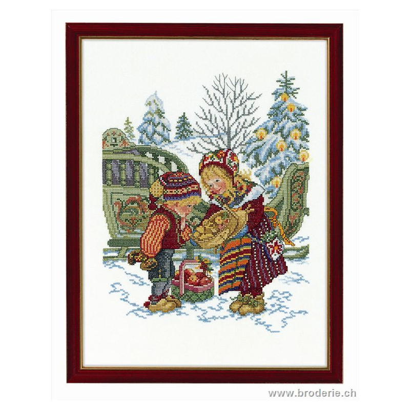 L'article 'Eva Rosenstand, kit Le Goûter des enfants (EV14-211)' fait partie de notre assortiment depuis le 1 mai 2009. Eva Rosenstand est une très belle gamme de points de croix comptés qui fête en 2008 ses 50 ans d'existence. Eva Rosenstand est une des premières maisons à avoir proposé aux clientes un style de broderie qui offrait d'autres motifs que des abécédaires ou marquoirs ... Les créatrices Clara Waever et Eva Rosenstand ont innové en réalisant de véritables tableaux en points de croix comptés, à s'y méprendre à de véritables peintures si on se tient à 1 petit mètre. Vous trouverez dans la gamme Eva Rosenstand beaucoup de paysages, des animaux qui semblent réels et pleins d'autres thèmes (mer - le Cervin - anciens métiers ... cartes de géographie des pays européens). Fiche technique : très belles broderies, riches en teintes différentes, souvent réalisées sur du lin. Points de croix comptés, points arrières. Ces ouvrages ne sont pas difficiles, mais relativement longs - regardez bien le format avant de commander et il est préférable d'aimer travailler sur du lin .. car c'est un peu dommage de devoir changer la trame.