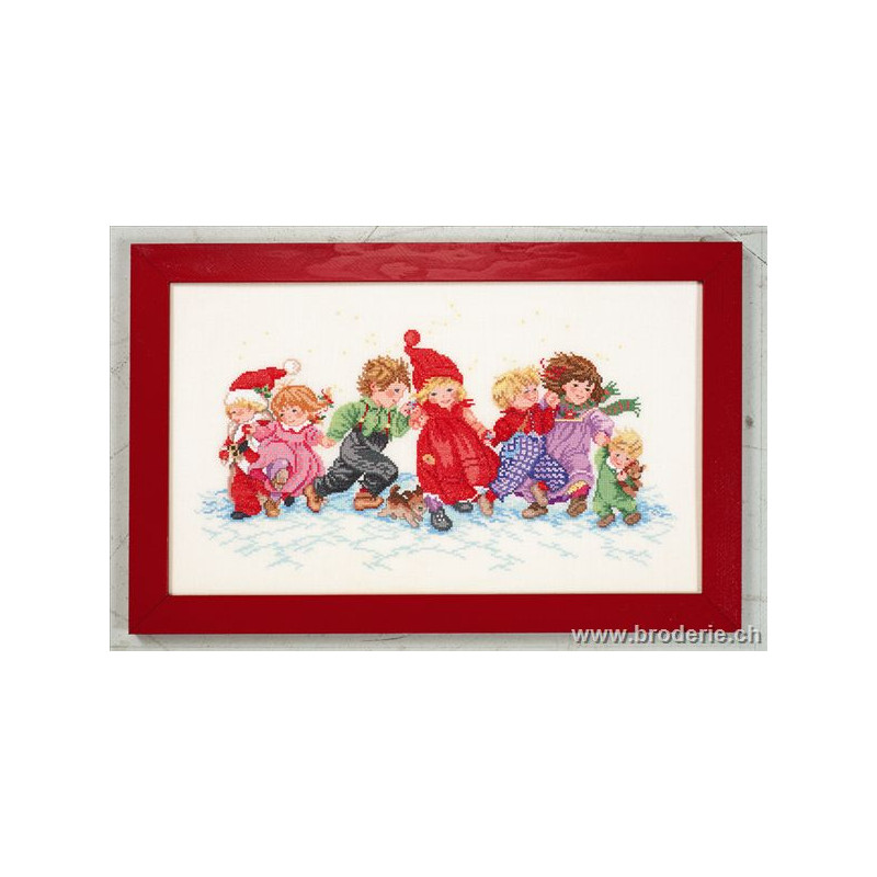 L'article 'Eva Rosenstand, kit Enfants dans la neige (EV14-258)' fait partie de notre assortiment depuis le 1 mai 2009. Eva Rosenstand est une très belle gamme de points de croix comptés qui fête en 2008 ses 50 ans d'existence. Eva Rosenstand est une des premières maisons à avoir proposé aux clientes un style de broderie qui offrait d'autres motifs que des abécédaires ou marquoirs ... Les créatrices Clara Waever et Eva Rosenstand ont innové en réalisant de véritables tableaux en points de croix comptés, à s'y méprendre à de véritables peintures si on se tient à 1 petit mètre. Vous trouverez dans la gamme Eva Rosenstand beaucoup de paysages, des animaux qui semblent réels et pleins d'autres thèmes (mer - le Cervin - anciens métiers ... cartes de géographie des pays européens). Fiche technique : très belles broderies, riches en teintes différentes, souvent réalisées sur du lin. Points de croix comptés, points arrières. Ces ouvrages ne sont pas difficiles, mais relativement longs - regardez bien le format avant de commander et il est préférable d'aimer travailler sur du lin .. car c'est un peu dommage de devoir changer la trame.