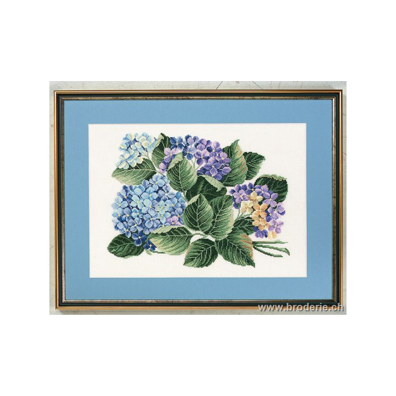L'article 'Eva Rosenstand, kit Hortensias (EV14-259)' fait partie de notre assortiment depuis le 1 mai 2009. Eva Rosenstand est une très belle gamme de points de croix comptés qui fête en 2008 ses 50 ans d'existence. Eva Rosenstand est une des premières maisons à avoir proposé aux clientes un style de broderie qui offrait d'autres motifs que des abécédaires ou marquoirs ... Les créatrices Clara Waever et Eva Rosenstand ont innové en réalisant de véritables tableaux en points de croix comptés, à s'y méprendre à de véritables peintures si on se tient à 1 petit mètre. Vous trouverez dans la gamme Eva Rosenstand beaucoup de paysages, des animaux qui semblent réels et pleins d'autres thèmes (mer - le Cervin - anciens métiers ... cartes de géographie des pays européens). Fiche technique : très belles broderies, riches en teintes différentes, souvent réalisées sur du lin. Points de croix comptés, points arrières. Ces ouvrages ne sont pas difficiles, mais relativement longs - regardez bien le format avant de commander et il est préférable d'aimer travailler sur du lin .. car c'est un peu dommage de devoir changer la trame.