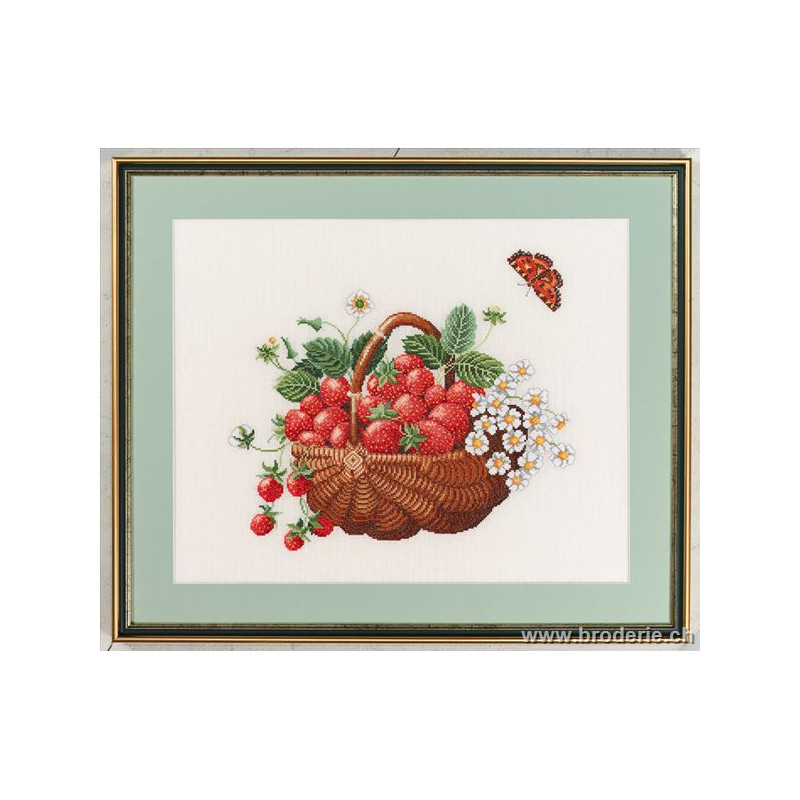 L'article 'Eva Rosenstand, kit Panier de fraises (EV14-267)' fait partie de notre assortiment depuis le 1 mai 2009. Eva Rosenstand est une très belle gamme de points de croix comptés qui fête en 2008 ses 50 ans d'existence. Eva Rosenstand est une des premières maisons à avoir proposé aux clientes un style de broderie qui offrait d'autres motifs que des abécédaires ou marquoirs ... Les créatrices Clara Waever et Eva Rosenstand ont innové en réalisant de véritables tableaux en points de croix comptés, à s'y méprendre à de véritables peintures si on se tient à 1 petit mètre. Vous trouverez dans la gamme Eva Rosenstand beaucoup de paysages, des animaux qui semblent réels et pleins d'autres thèmes (mer - le Cervin - anciens métiers ... cartes de géographie des pays européens). Fiche technique : très belles broderies, riches en teintes différentes, souvent réalisées sur du lin. Points de croix comptés, points arrières. Ces ouvrages ne sont pas difficiles, mais relativement longs - regardez bien le format avant de commander et il est préférable d'aimer travailler sur du lin .. car c'est un peu dommage de devoir changer la trame.
