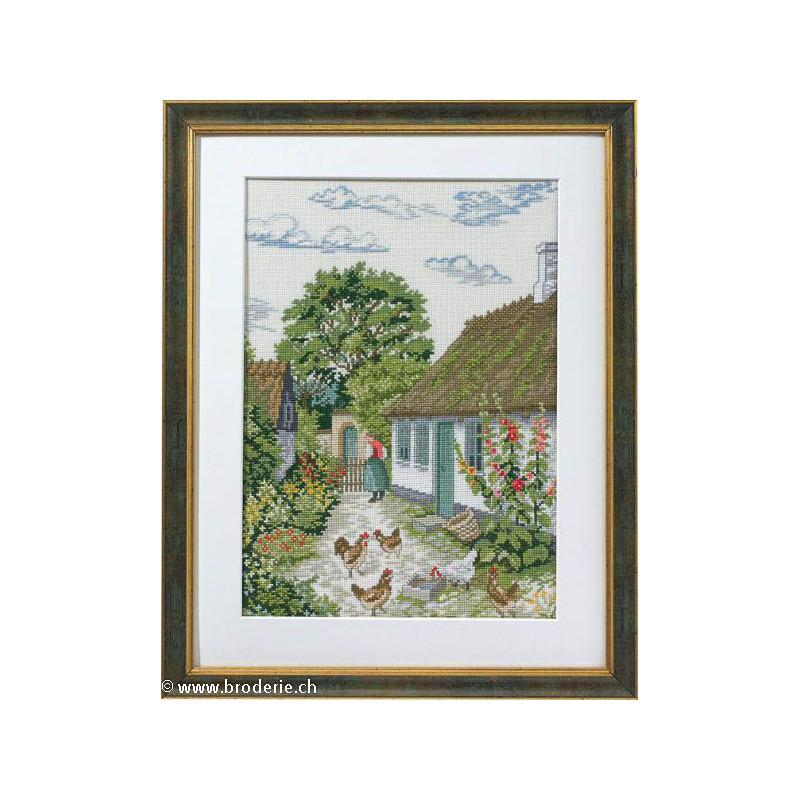 L'article 'Eva Rosenstand, kit Ferme et bassecour (EV14-355)' fait partie de notre assortiment depuis le 14 juin 2013. Eva Rosenstand est une très belle gamme de points de croix comptés qui fête en 2008 ses 50 ans d'existence. Eva Rosenstand est une des premières maisons à avoir proposé aux clientes un style de broderie qui offrait d'autres motifs que des abécédaires ou marquoirs ... Les créatrices Clara Waever et Eva Rosenstand ont innové en réalisant de véritables tableaux en points de croix comptés, à s'y méprendre à de véritables peintures si on se tient à 1 petit mètre. Vous trouverez dans la gamme Eva Rosenstand beaucoup de paysages, des animaux qui semblent réels et pleins d'autres thèmes (mer - le Cervin - anciens métiers ... cartes de géographie des pays européens). Fiche technique : très belles broderies, riches en teintes différentes, souvent réalisées sur du lin. Points de croix comptés, points arrières. Ces ouvrages ne sont pas difficiles, mais relativement longs - regardez bien le format avant de commander et il est préférable d'aimer travailler sur du lin .. car c'est un peu dommage de devoir changer la trame.
