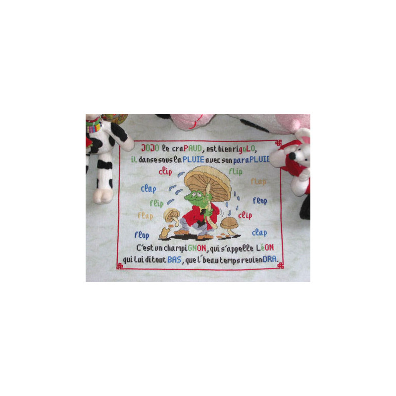 L'article 'Isabelle Vautier, grille Jojo le crapaud (RV46)' fait partie de notre assortiment depuis le 12 août 2008. Isabelle Vautier nous propose une très jolie gamme de modèles de points de croix comptés, faciles à réaliser sur des thèmes toujours actuels - aminaux, abécédaire, fleurs marquoir, coeurs. Ces modèles sont très agréables à réaliser, et Isabelle propose aussi de sympathiques monochromes, éventuellement deux teintes. Fiche technique : points de croix, peu de points arrières.