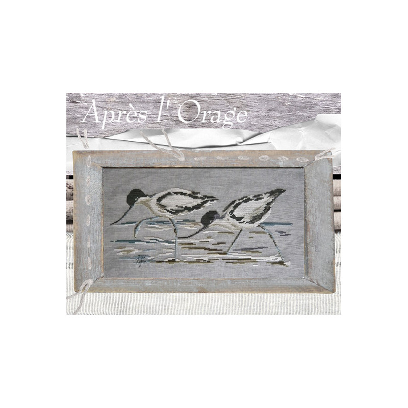 L'article 'Isabelle Vautier, grille Avocettes après l'orage (PORT10)' fait partie de notre assortiment depuis le 4 janvier 2012. Isabelle Vautier nous propose une très jolie gamme de modèles de points de croix comptés, faciles à réaliser sur des thèmes toujours actuels - aminaux, abécédaire, fleurs marquoir, coeurs. Ces modèles sont très agréables à réaliser, et Isabelle propose aussi de sympathiques monochromes, éventuellement deux teintes. Fiche technique : points de croix, peu de points arrières.