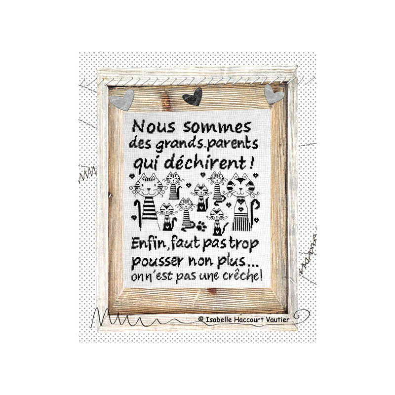 L'article 'Isabelle Vautier, grille Une famille formidable (BDN07)' fait partie de notre assortiment depuis le 21 octobre 2015. Isabelle Vautier nous propose une très jolie gamme de modèles de points de croix comptés, faciles à réaliser sur des thèmes toujours actuels - aminaux, abécédaire, fleurs marquoir, coeurs. Ces modèles sont très agréables à réaliser, et Isabelle propose aussi de sympathiques monochromes, éventuellement deux teintes. Fiche technique : points de croix, peu de points arrières.