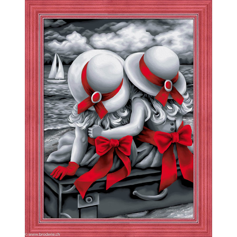 Artibalta, kit diamant Les Soeurs jumelles -Sisters (art. AZ-1614). Dimensions: 30 x 40 cm. Kit comprenant la toile adhésive, les strass carrés emballés dans des sachets individuels et numérotés aux références des coloris de DMC, une pince, un stylo et sa colle, 2 réceptables et les explications.Toute la surface du tableau est à recouvrir de strass. ATTENTION: ce n'est pas une broderie, il n'y a ni fil ni aiguille, mais un collage comme une mosaïque.
