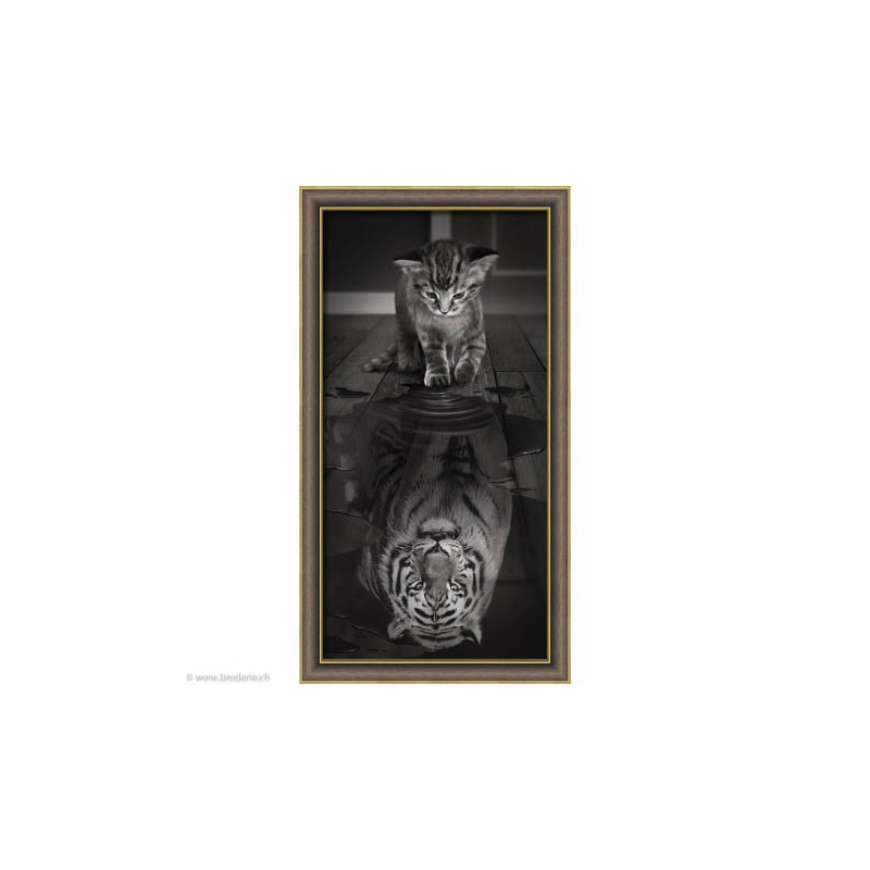 Artibalta, kit diamant Tiger inside (art. AZ-1771). Dimensions: 30 x 60 cm. Kit comprenant la toile adhésive, les strass carrés emballés dans des sachets individuels et numérotés aux références des coloris de DMC, une pince, un stylo et sa colle, 2 réceptables et les explications.Toute la surface du tableau est à recouvrir de strass. ATTENTION: ce n'est pas une broderie, il n'y a ni fil ni aiguille, mais un collage comme une mosaïque.Dans la même série 1870.