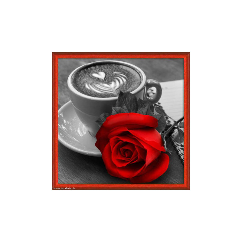 Artibalta, kit diamant Rose and coffee (art. AZ-1773). Dimensions: 25 x 25 cm. Kit comprenant la toile adhésive, les strass carrés emballés dans des sachets individuels et numérotés aux références des coloris de DMC, une pince, un stylo et sa colle, 2 réceptables et les explications.Toute la surface du tableau est à recouvrir de strass. ATTENTION: ce n'est pas une broderie, il n'y a ni fil ni aiguille, mais un collage comme une mosaïque.Dans la même série 1772 à 1776.