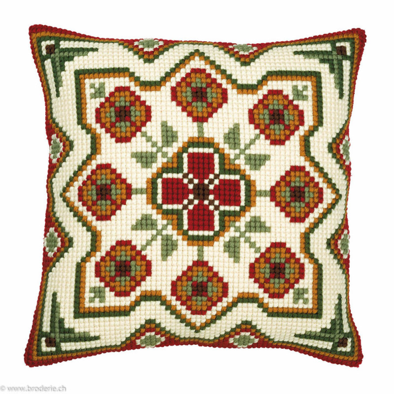 Vervaco, kit coussin Géométrique (art. PN0008594). Dimensions: 40 x 40 cm. Points utilisés: point de croix. Canevas peint 1,8 croix/cm, le fond n'est pas fourni pour le montage, n'est pas vendu hors de Suisse, dans la même série PN0008595, PN008593, PN0008583.