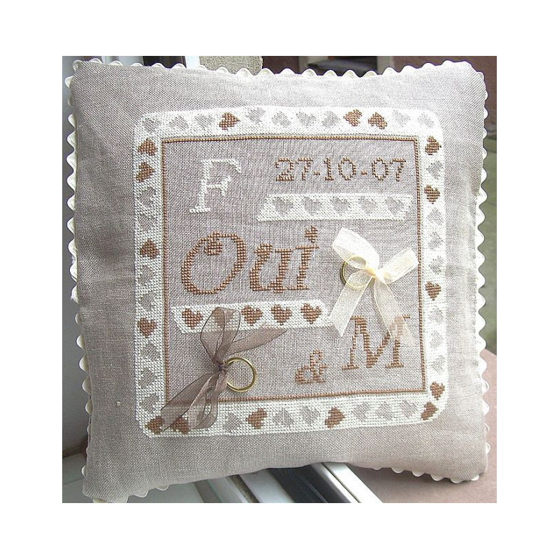 L'article 'La Cigogne qui brode, grille Coussin de mariage (CIG037)' fait partie de notre assortiment depuis le 6 juin 2008. La Cigogne qui brode est une jolie gamme alsacienne. Sa créatrice, Mme Isabelle Gauger, passionnée de broderie depuis des années, a ouvert une boutique en 2000 dans son Alsace qu'elle affectionne, et plus tard en est venue à la création de ses propores modèles. Un plaisir. La mascotte est évidemment une cigogne, nommée Makote. Fiche technique: modèles de points de croix comptés, livrés avec les accessoires présentés. Attention, Isabelle a aussi créé quelques modèles typiquement alsaciens, par ex. les réf. CIG070 et suivants, qui sont proposés uniquement en kits, même s'ils ont répertoriés dans notre rubrique de grilles.