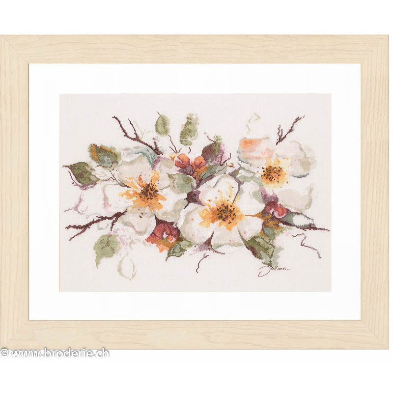 L'article 'Lanarte, kit fleurs et bouton de pommier (LA0008051)' fait partie de notre assortiment depuis le 26 septembre 2006. Lanarte est un fabricant hollandais de kits de points de croix de grande qualité et est renommé pour son choix de dessins et la méthode par laquelle les peintures originales sont admirablement retranscrites en points de croix. Vous trouverez chez Lanarte une jolie gamme de tableaux pour enfants et aussi de beaux tableaux de personnages de notre culture et d'autres. La série Platinium est nouvelle chez Lanarte. Elle est composée tableaux de points de croix comptés entièrement brodés,y compris le fond parfois très fonc