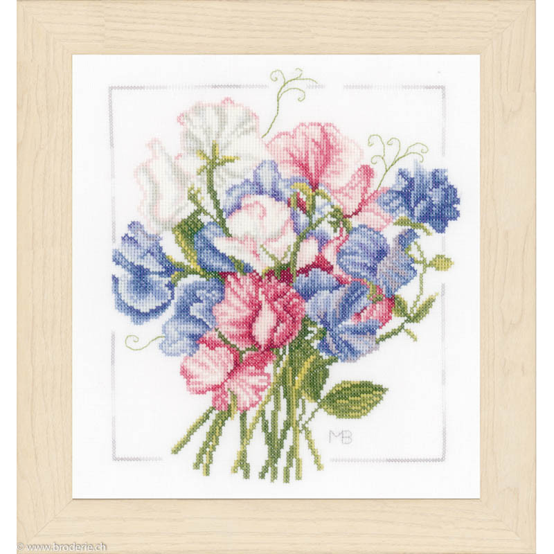 L'article 'Lanarte, kit Marjolein Bastin Pois de senteur (LA0157497)' fait partie de notre assortiment depuis le 17 février 2016. Lanarte est un fabricant hollandais de kits de points de croix de grande qualité et est renommé pour son choix de dessins et la méthode par laquelle les peintures originales sont admirablement retranscrites en points de croix. Vous trouverez chez Lanarte une jolie gamme de tableaux pour enfants et aussi de beaux tableaux de personnages de notre culture et d'autres. La série Platinium est nouvelle chez Lanarte. Elle est composée tableaux de points de croix comptés entièrement brodés,y compris le fond parfois très fonc