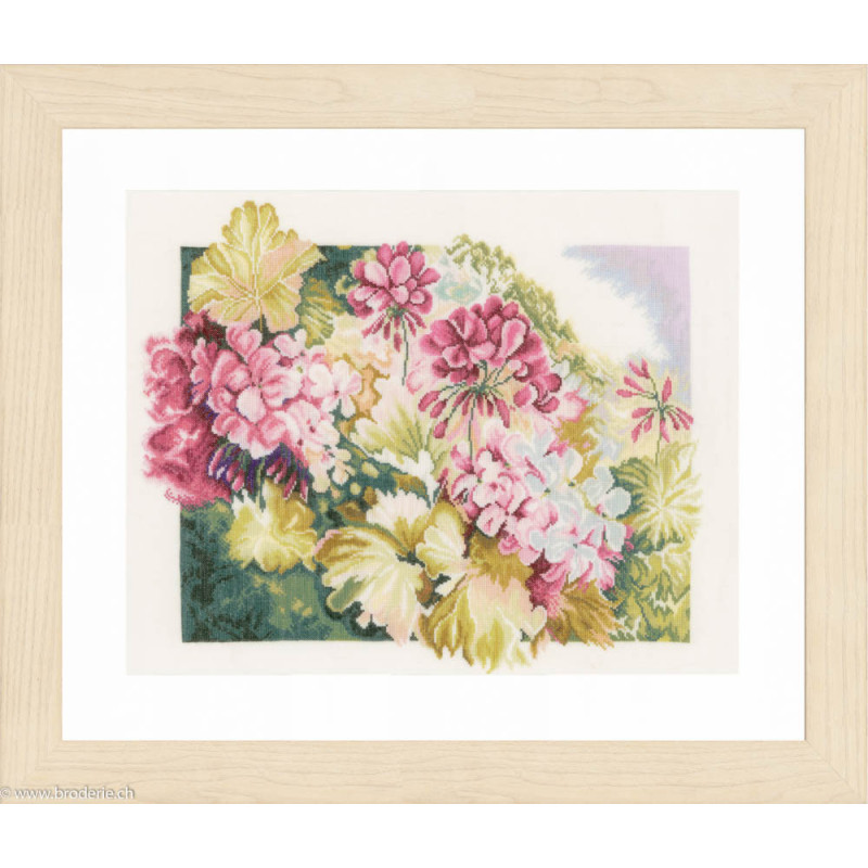 L'article 'Lanarte, kit Géraniums (LA0164073)' fait partie de notre assortiment depuis le 2 novembre 2016. Lanarte est un fabricant hollandais de kits de points de croix de grande qualité et est renommé pour son choix de dessins et la méthode par laquelle les peintures originales sont admirablement retranscrites en points de croix. Vous trouverez chez Lanarte une jolie gamme de tableaux pour enfants et aussi de beaux tableaux de personnages de notre culture et d'autres. La série Platinium est nouvelle chez Lanarte. Elle est composée tableaux de points de croix comptés entièrement brodés,y compris le fond parfois très fonc