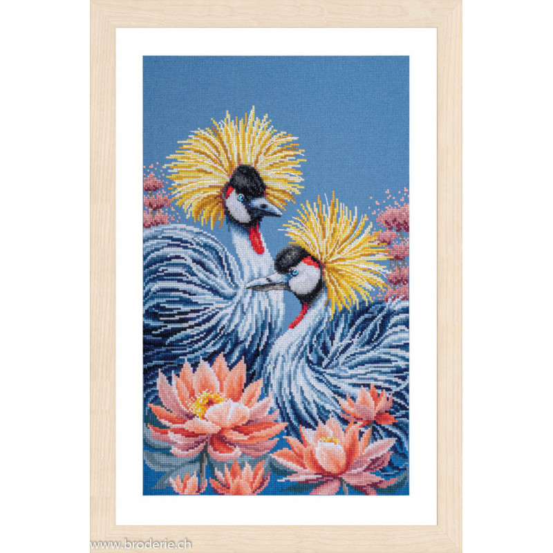 L'article 'Lanarte, kit Grues couronnées moires (LA0216165)' fait partie de notre assortiment depuis le 14 juin 2025. Lanarte est un fabricant hollandais de kits de points de croix de grande qualité et est renommé pour son choix de dessins et la méthode par laquelle les peintures originales sont admirablement retranscrites en points de croix. Vous trouverez chez Lanarte une jolie gamme de tableaux pour enfants et aussi de beaux tableaux de personnages de notre culture et d'autres. La série Platinium est nouvelle chez Lanarte. Elle est composée tableaux de points de croix comptés entièrement brodés,y compris le fond parfois très fonc
