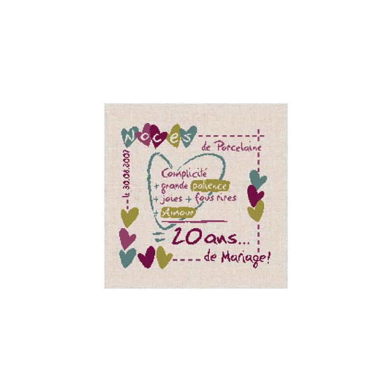 L'article 'LiliPoints, Grille Mariages, cérémonies - anniversaire de mariage (M006)' fait partie de notre assortiment depuis le 14 avril 2008. LiliPoints nous propose une très jolie gamme moderne de points de croix comptés, faciles à réaliser sur des thèmes toujours actuels - mariages- naissance - fêtes - Noël. Détail important: la créatrice nous conseille souvent dans ces fiches de réaliser la broderie 1 fil sur 1 fil lorsque les modèles ont plus de 150 points de large ou de haut. A vous de choisir ainsi la taille du résultat car en utilisant la trame standard 5.5 points/cm, les broderies sont parfois un peu grandes pour les monter en cadre, et alors nous conseillons de les monter sur un coussin (lorsqu'ils s'agit notamment de broderie à thème - amitié - mariage). Fiche technique : points de croix - peu de teintes utilisées dans les cotons - peu de points arrières. Les accessoires proposés sont souvent compris avec la fiche (coeurs en nacre - boutons).