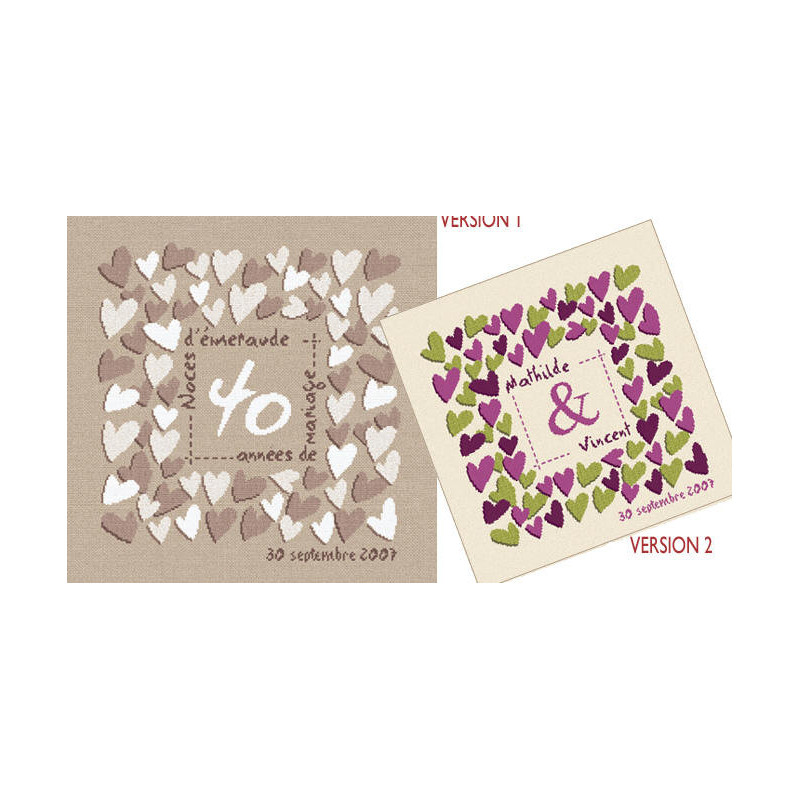 L'article 'LiliPoints, Grille Mariages, cérémonies - anniversaire de mariage (M005)' fait partie de notre assortiment depuis le 14 avril 2008. LiliPoints nous propose une très jolie gamme moderne de points de croix comptés, faciles à réaliser sur des thèmes toujours actuels - mariages- naissance - fêtes - Noël. Détail important: la créatrice nous conseille souvent dans ces fiches de réaliser la broderie 1 fil sur 1 fil lorsque les modèles ont plus de 150 points de large ou de haut. A vous de choisir ainsi la taille du résultat car en utilisant la trame standard 5.5 points/cm, les broderies sont parfois un peu grandes pour les monter en cadre, et alors nous conseillons de les monter sur un coussin (lorsqu'ils s'agit notamment de broderie à thème - amitié - mariage). Fiche technique : points de croix - peu de teintes utilisées dans les cotons - peu de points arrières. Les accessoires proposés sont souvent compris avec la fiche (coeurs en nacre - boutons).