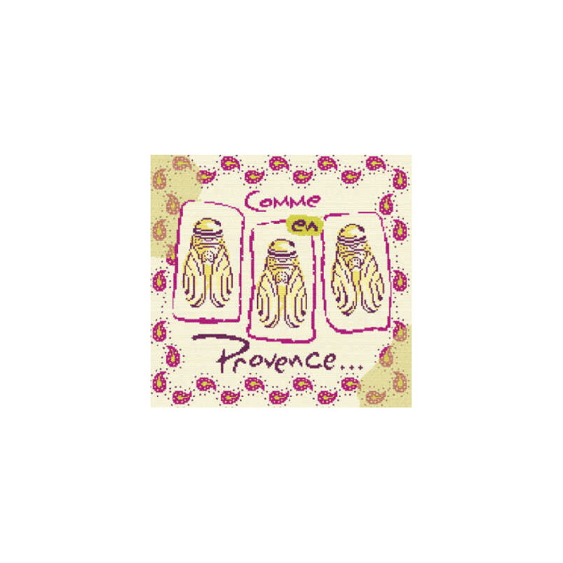 L'article 'LiliPoints, Grille Provence - Comme en Provence (P003)' fait partie de notre assortiment depuis le 14 avril 2008. LiliPoints nous propose une très jolie gamme moderne de points de croix comptés, faciles à réaliser sur des thèmes toujours actuels - mariages- naissance - fêtes - Noël. Détail important: la créatrice nous conseille souvent dans ces fiches de réaliser la broderie 1 fil sur 1 fil lorsque les modèles ont plus de 150 points de large ou de haut. A vous de choisir ainsi la taille du résultat car en utilisant la trame standard 5.5 points/cm, les broderies sont parfois un peu grandes pour les monter en cadre, et alors nous conseillons de les monter sur un coussin (lorsqu'ils s'agit notamment de broderie à thème - amitié - mariage). Fiche technique : points de croix - peu de teintes utilisées dans les cotons - peu de points arrières. Les accessoires proposés sont souvent compris avec la fiche (coeurs en nacre - boutons).